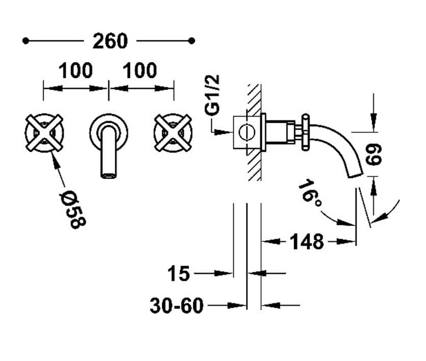 Bateria umywalkowa dwuuchwytowa podtynkowa Tres Montblanc 28330001