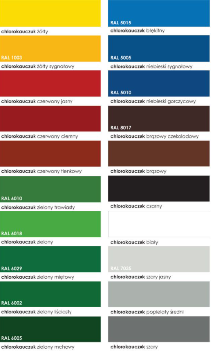- odporna na okresowe działanie (rozpryski, zachlapania) rozcieńczonymi kwasami i zasadami (stężenie do 10%) oraz odporna na okresowe działanie (rozpryski, zachlapania) olejów napędowych i benzyn - pomalowane powierzchnie nie mogą być zanurzone w w/w cieczach.