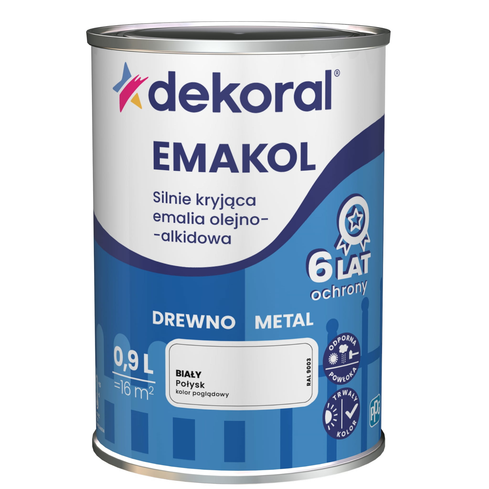 Farba do drewna i metalu Dekoral Emakol Strong biała połysk 0,9l