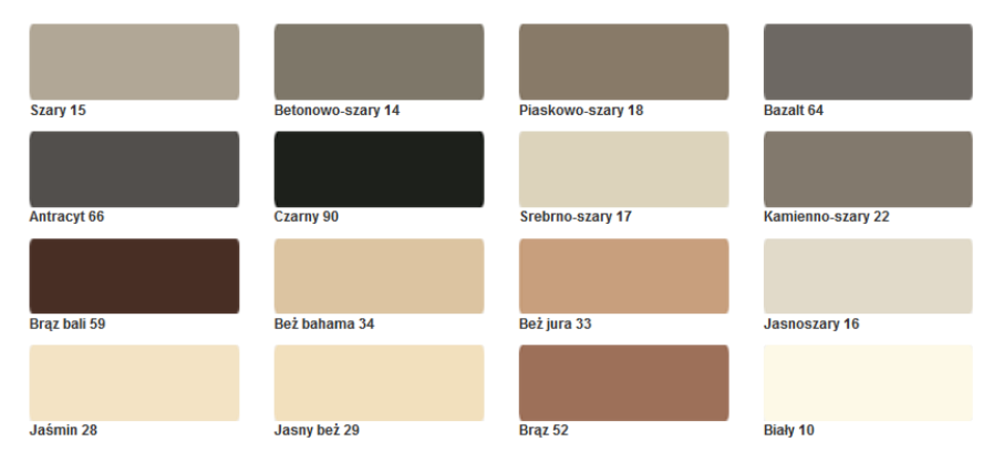 - Zużycie: około 0,4 kg/m2 przy płytkach formatu 30 x 60 cm, szerokości spoiny 5 mm i głębokości spoiny 10 mm; około 0,7-1,0 kg/m2 przy płytkach formatu 30 x 30 cm, szerokości spoiny 10 mm i głębokości spoiny 10 mm