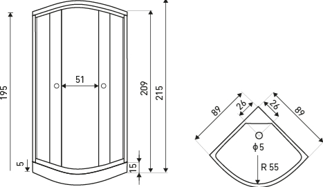 - wyposażenie kabiny: radio, wentylator, oświetlenie halogenowe, panel sterujący dotykowy, deszczownica umieszczona w dachu, słuchawka prysznicowa, 3 dysze hydromasażowe stałe PP, szklana półka z relingiem
