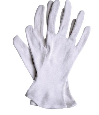 Rękawice ochronne wykonane z bawełny w kolorze białym, nie elektryzują się, dopasowują sie do doni.