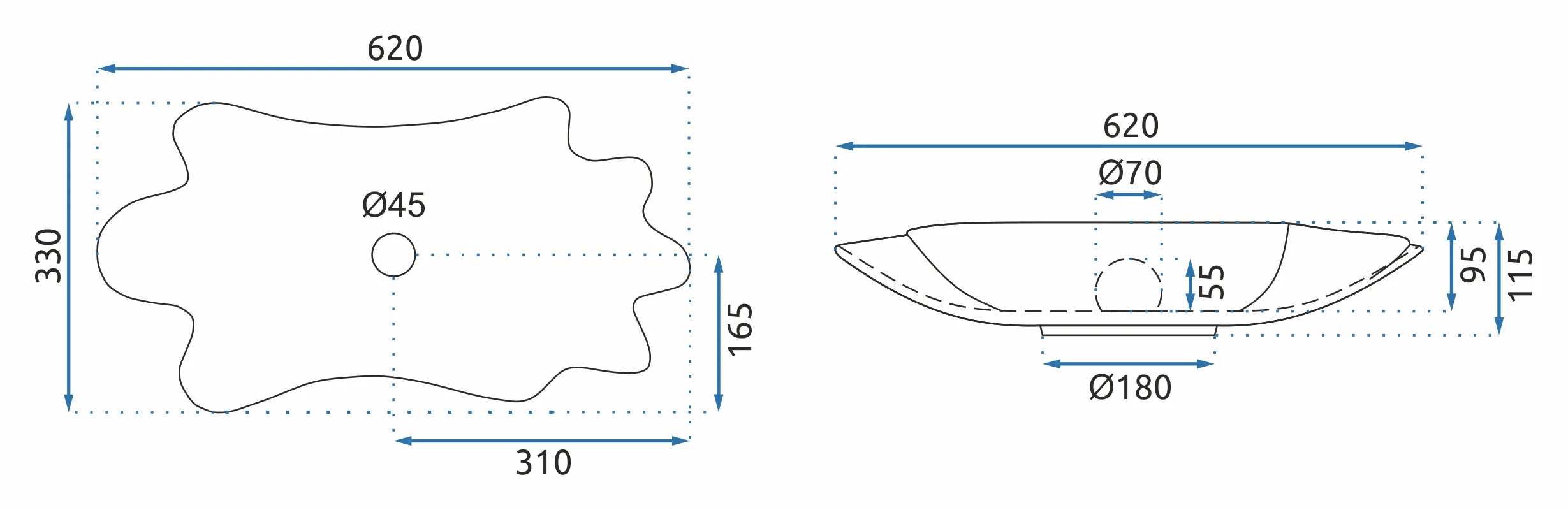 - Średnica otworu odpływowego: 45 mm