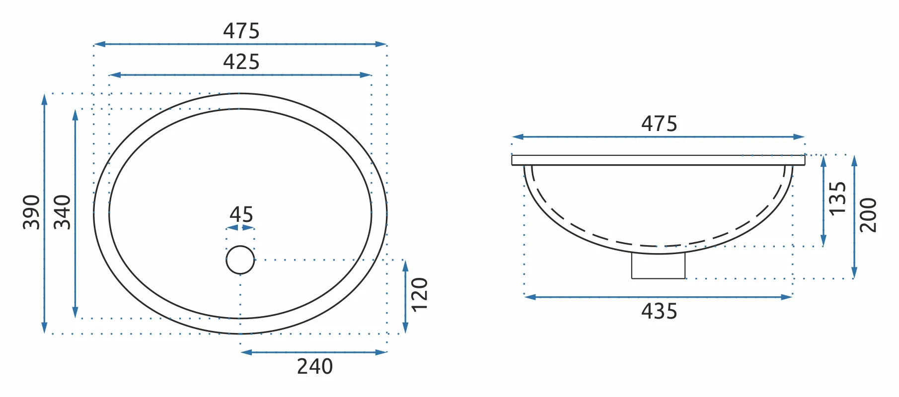- Średnica otworu odpływowego: 45 mm