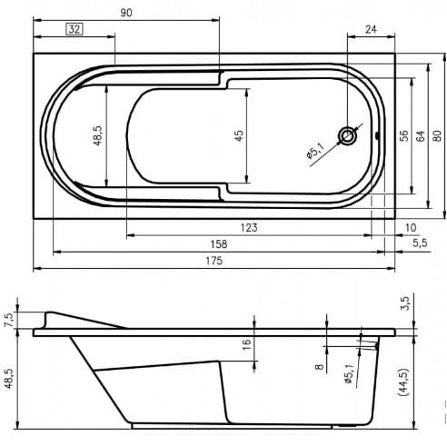 Wanna prostokątna Riho Columbia 175x80 BA04