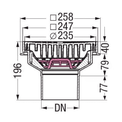 Wpust podwórzowy Ecoguss DN100 pionowy z kwadratową ramą Kessel 67110B