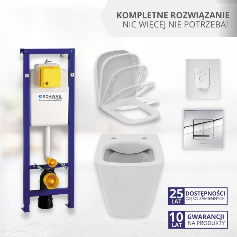 Zestaw SCHWAB: stelaz Duplo 380 + przycisk chrom ARTE + podkladka WC + miska iLifeB + deska wolnoopadajaca