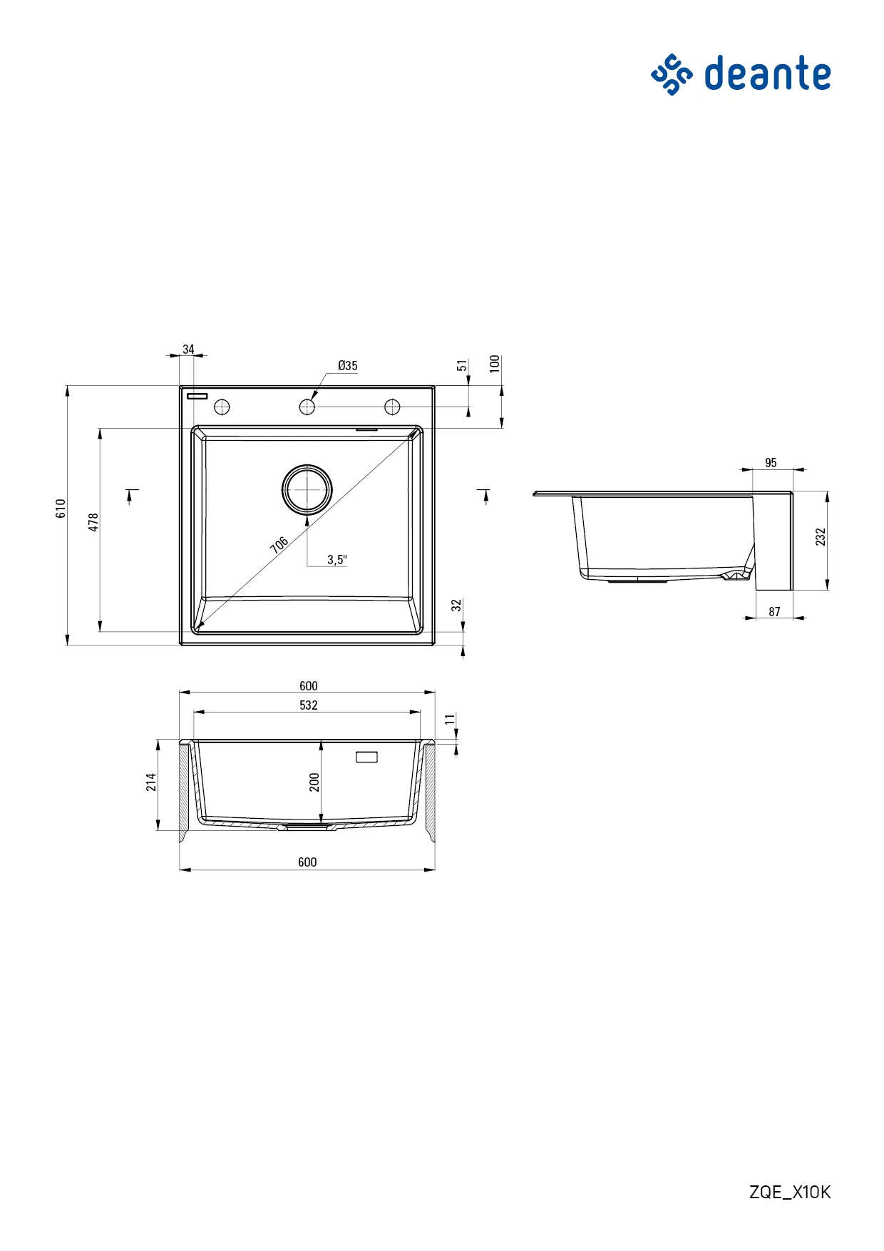 - UWAGA! Specjalny sposobu montażu – modułowy, stawiany. Szczegóły w instrukcji. Przygotuj otwór nad szafką zgodnie z wymiarami zlewozmywaka. Idealny nad szafkę o wymiarach 60 cm.