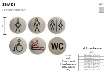Znak samoprzylepny PCV stal nierdzewna WC Damski INX Domino