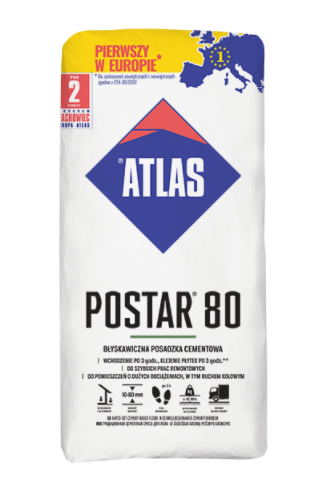 ATLAS POSTAR 80 produkowany jest w postaci suchej mieszanki cementu portlandzkiego, wypełniaczy kwarcowych oraz dodatków modyfikujących.