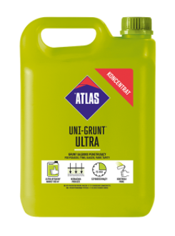 - ATLAS UNI-GRUNT ULTRA jest preparatem gruntującym przeznaczonym do różnych typów podłoży (ścian, podłóg, sufitów), wewnątrz i na zewnątrz budynków.
