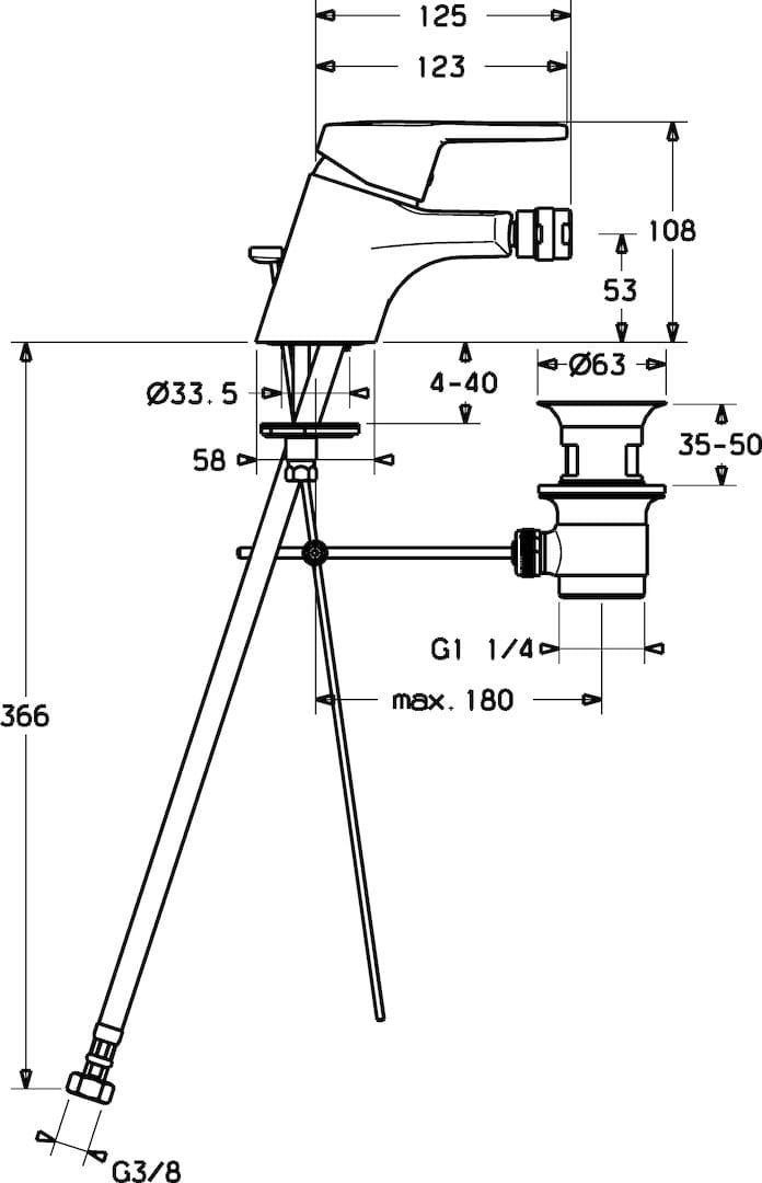 - zasięg wylewki 125 mm