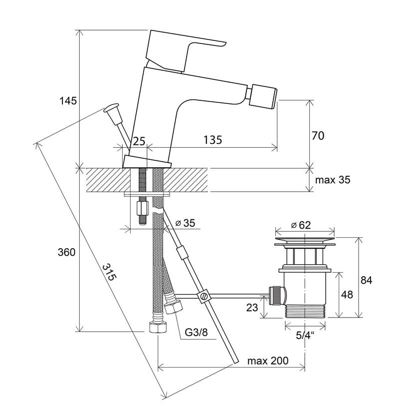- węże przyłączeniowe: elastyczne 450 mm, średnica G3/8