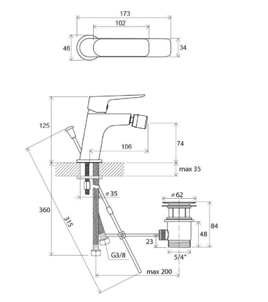 - węże przyłączeniowe: elastyczne 450 mm, średnica G3/8