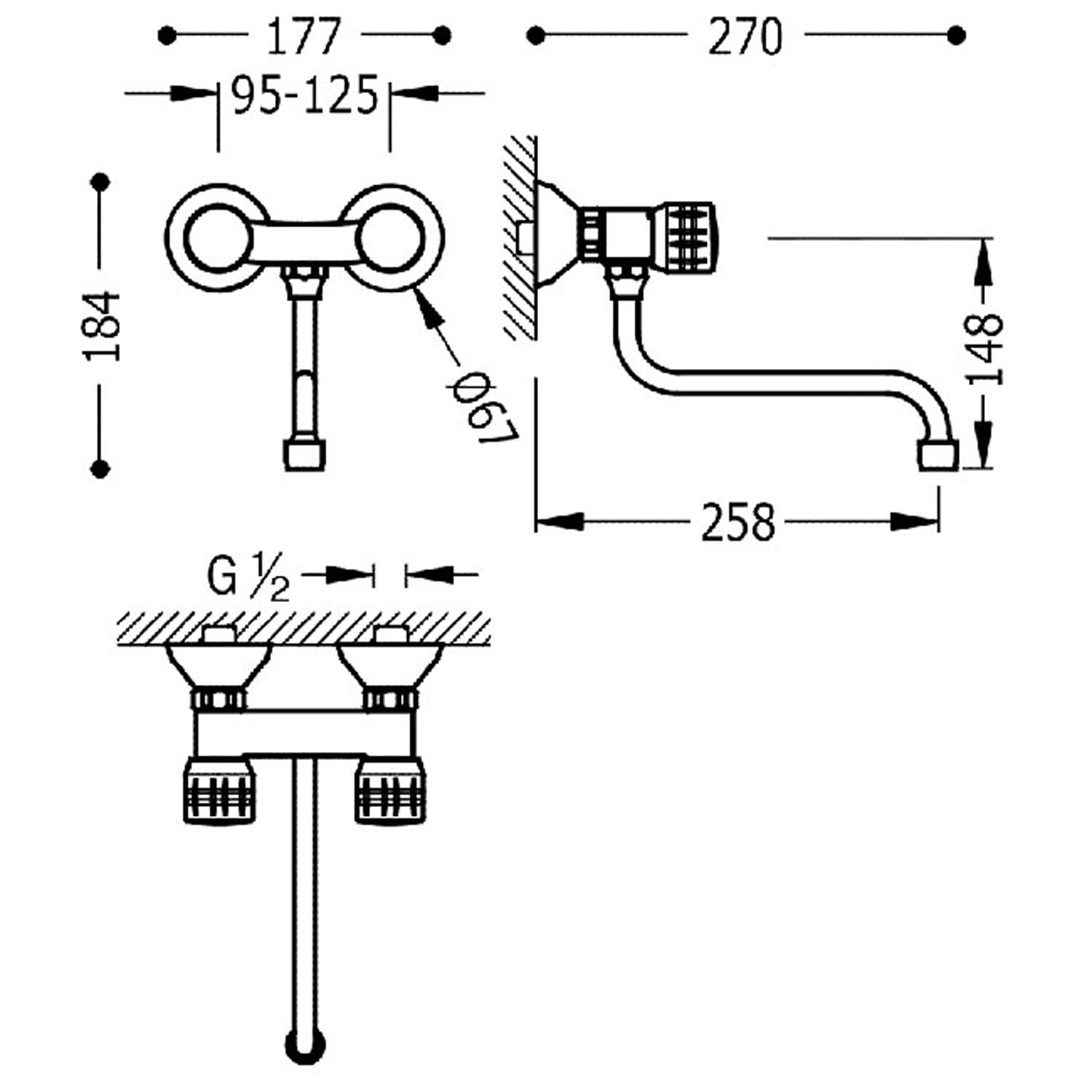 - Odległość od ściany: 258 mm
