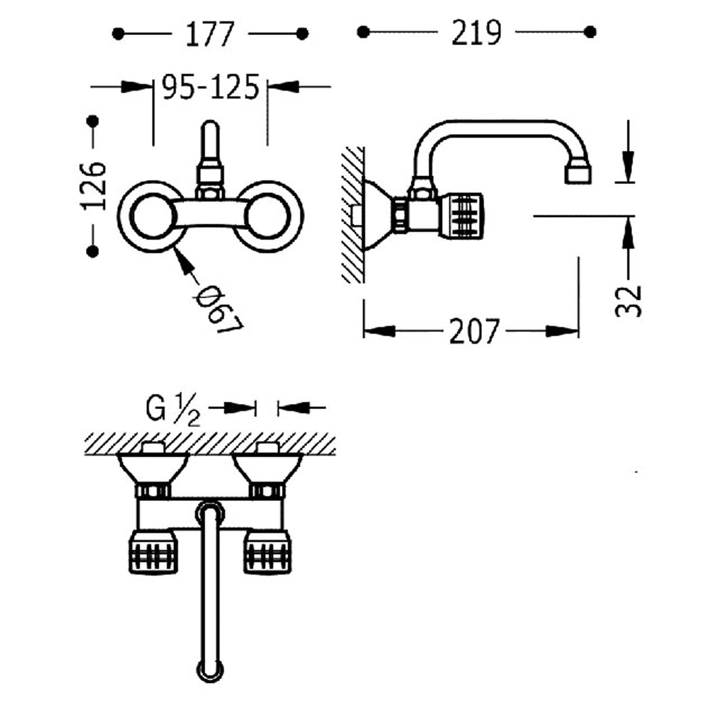 - Odległość od ściany: 207 mm