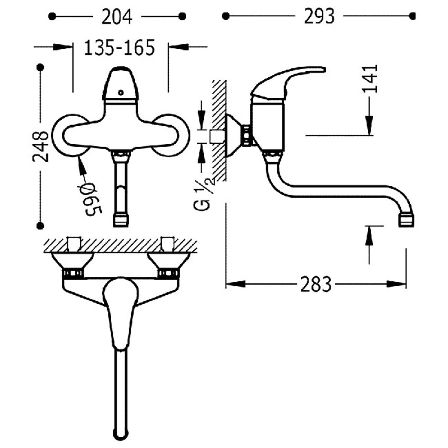 - Odległość od ściany: 283 mm