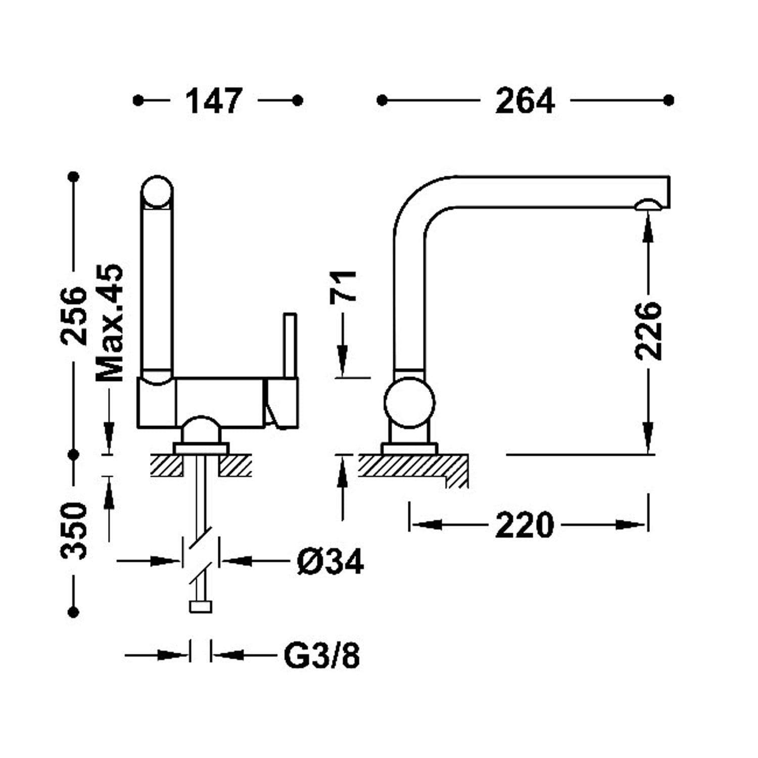 - Tres-duo®. Oszczędność wody. Dwie pozycje otwarcia uchwytu. W pośredniej pozycji zużycie wody jest o połowę niższe