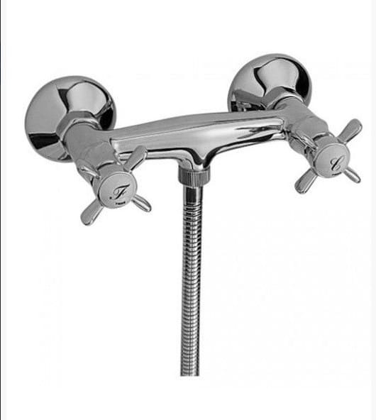 Tres Retro chrom 524.167.03.61 to bateria natryskowa ścienna z pokrętłami, stalowa. Bateria wykonana jest w stylu retro, który odnosi się do minionych epok.