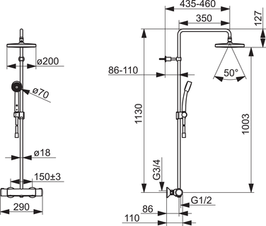 Bateria natryskowa z deszczownicą Oras Nova 7401U z 1-strumieniową rączką natrysku Oras Apollo 70 mm