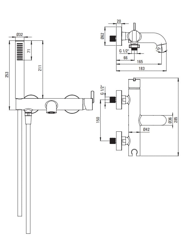 - Wysokość całkowita: 183 mm