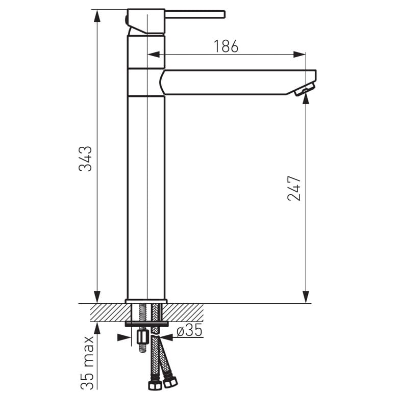 - wylewka, skierowana lekkim skosem w kierunku misy umywalkowej, z funkcję obrotową