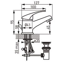 Bateria umywalkowa o kształtach owalnych z wylewką o przekroju owalnym.