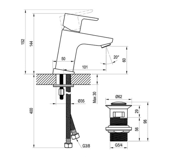 - węże przyłączeniowe: elastyczne 450 mm, średnica G3/8
