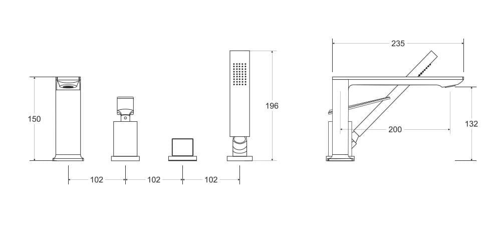 Bateria wannowa Besco Aspira 4-otworowa czarny matt