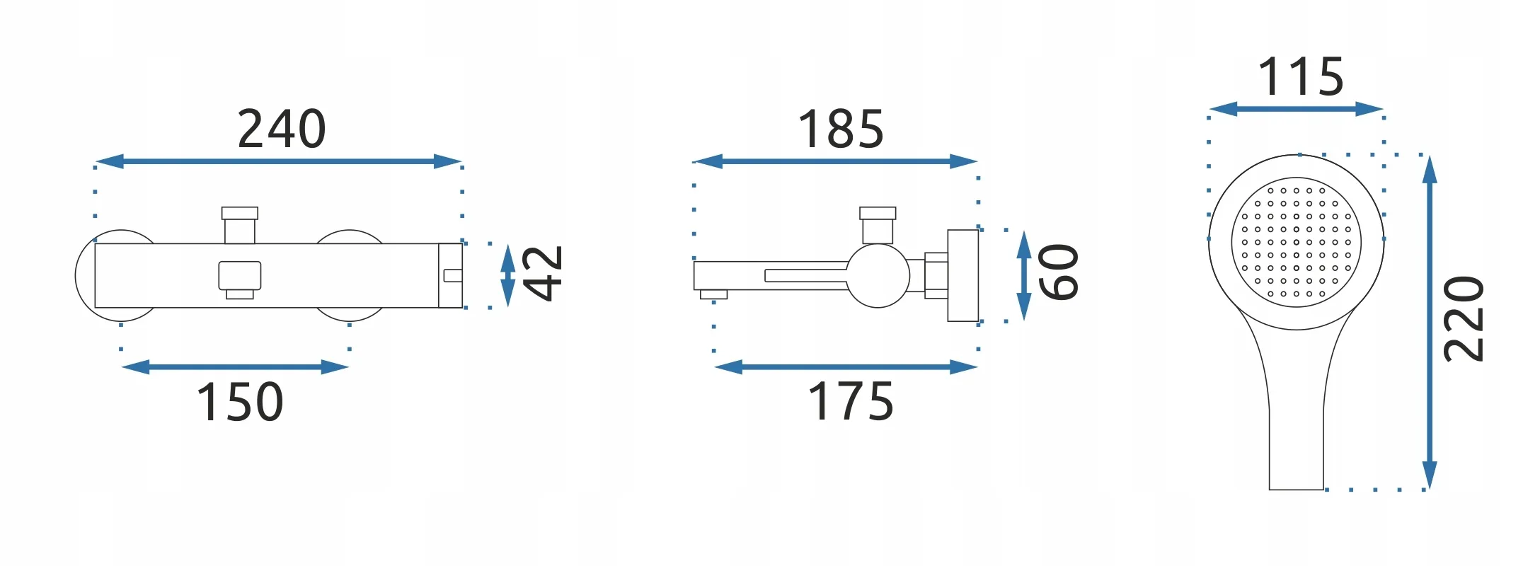 - Zasięg wylewki: 175 mm