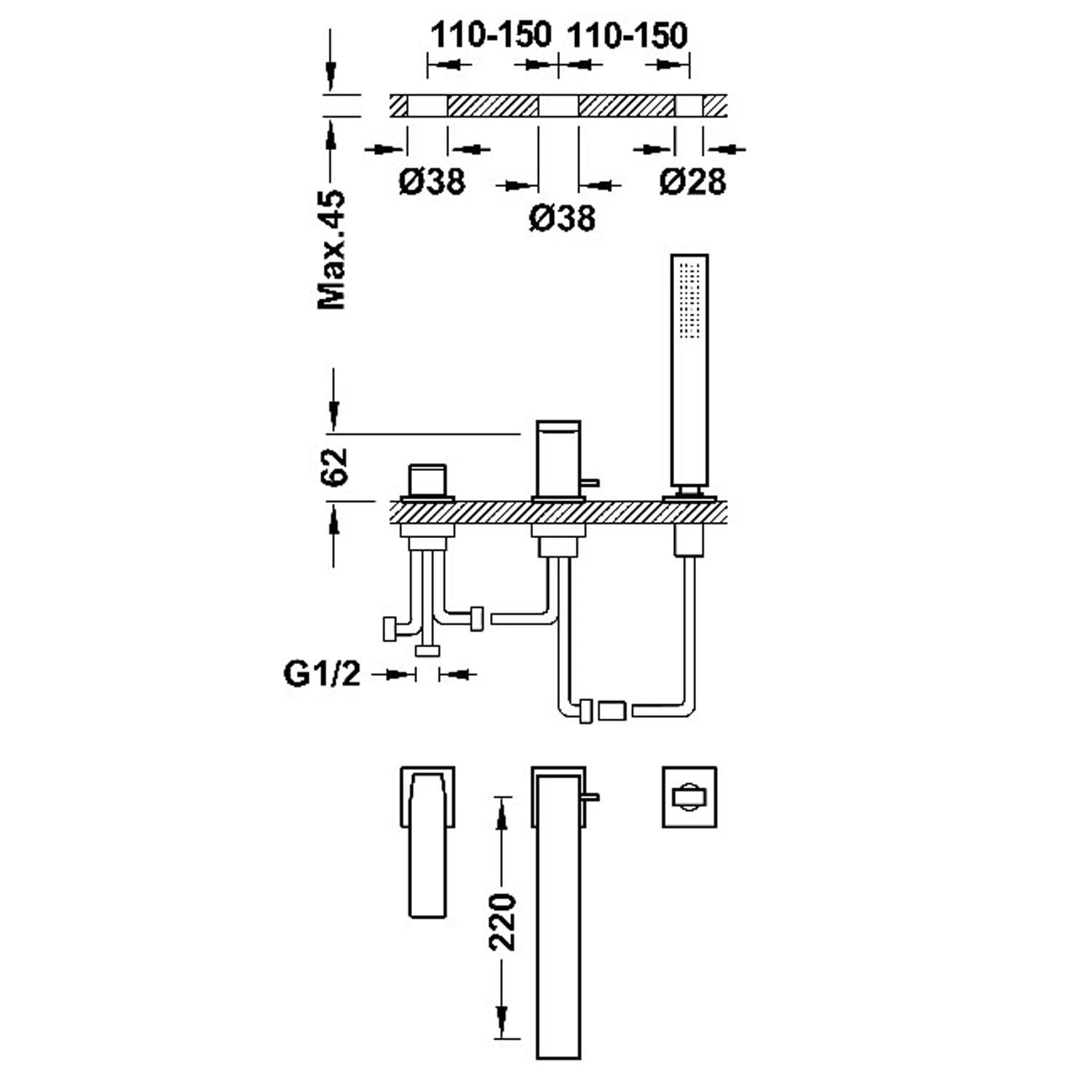 Bateria wannowo prysznicowa Tres Slim Exclusive