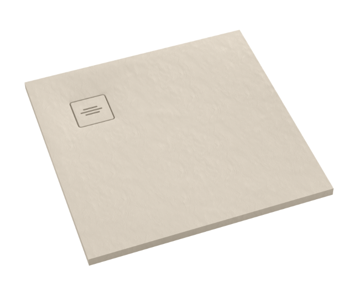 Kwadratowy brodzik prysznicowy z powierzchnią o strukturze kamienia.