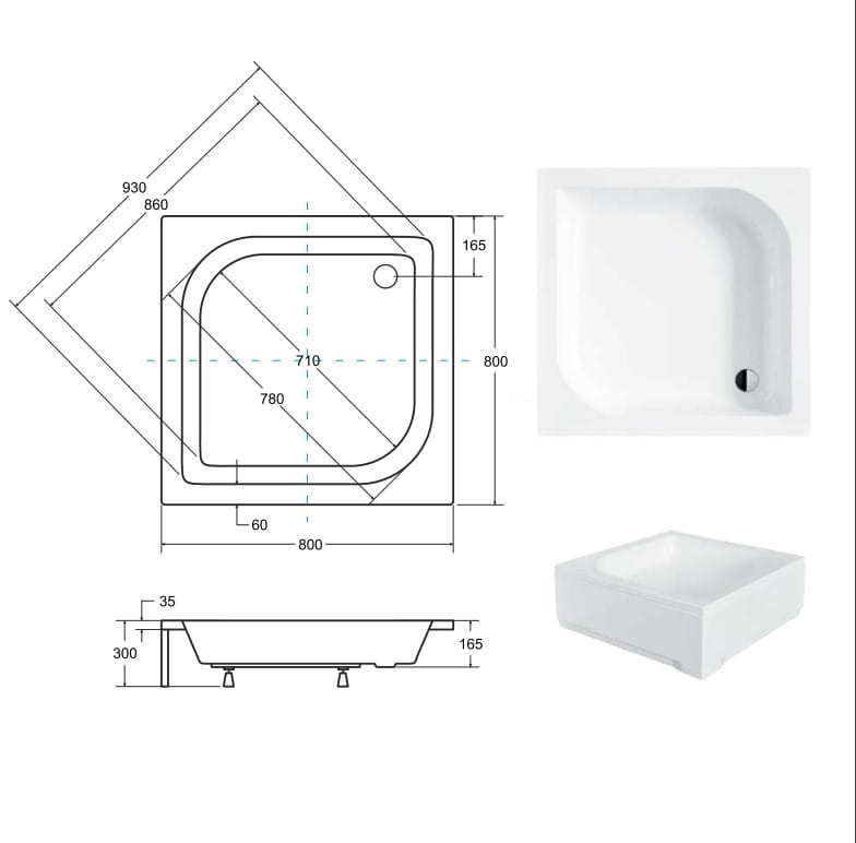 Brodzik kwadratowy Besco Ares 80 x 80 cm