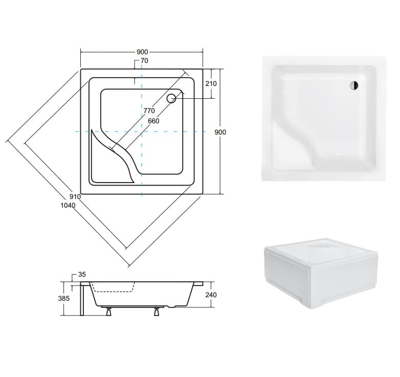 Brodzik kwadratowy Besco Igor 90 x 90 cm - DODATKOWO 5% RABATU NA KOD BESCO5