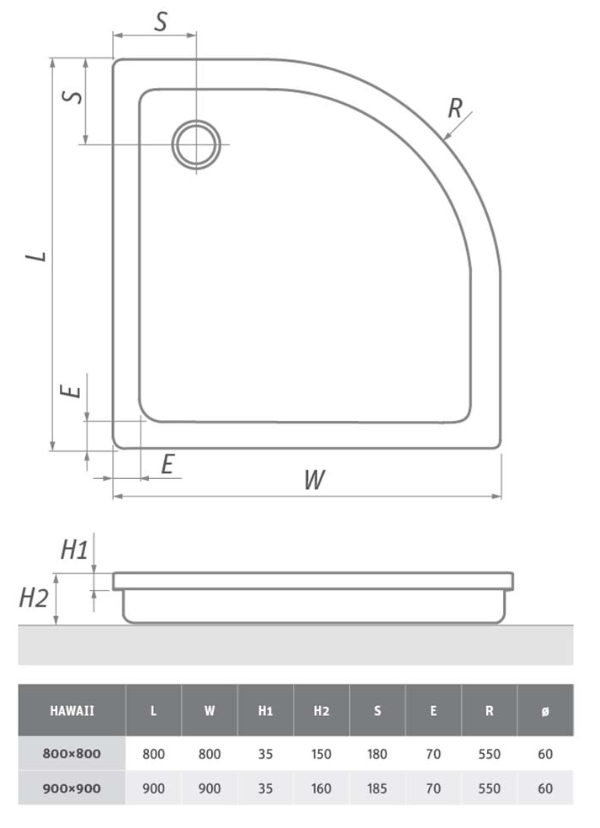 Brodzik półokrągły 80x80 Roth Hawaii 8000007