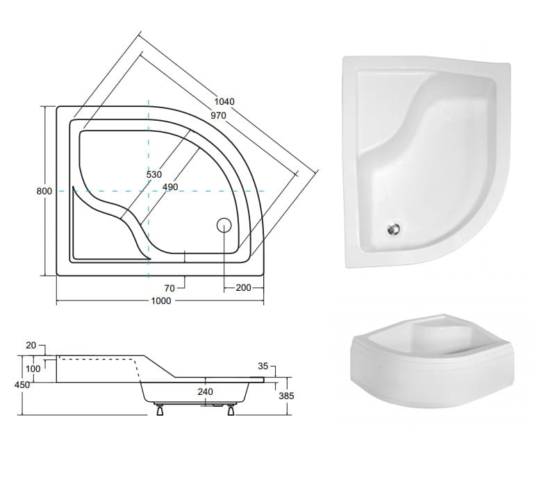 Brodzik półokrągły asymetryczny Besco Maxi 100x80cm wersja prawa - dodatkowo 5% RABATU na kod BESCO5