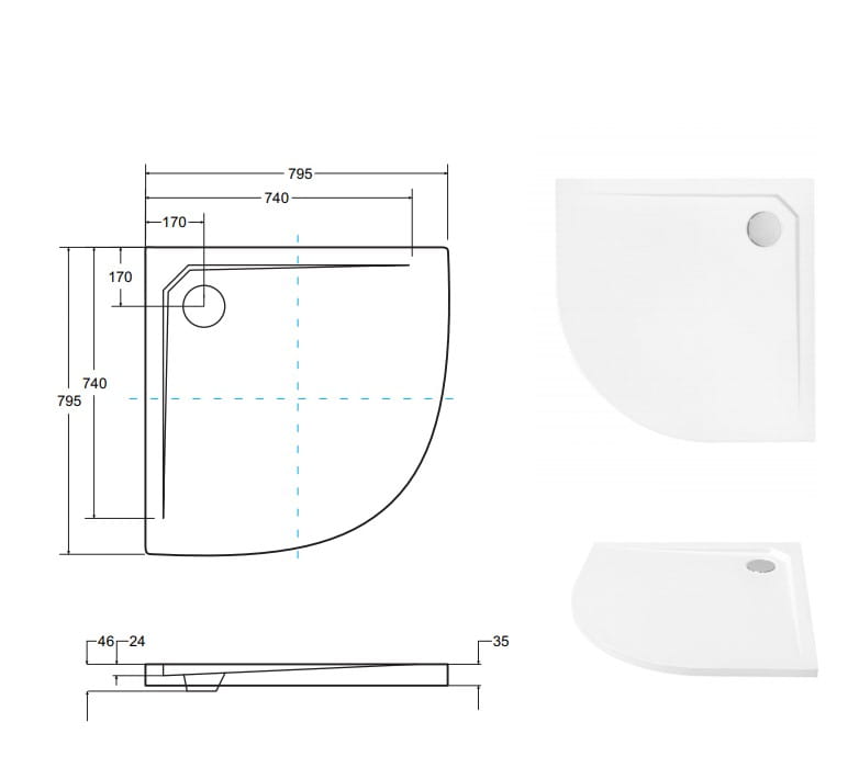 Brodzik półokrągły Besco Asco Ultraslim 80 x 80 cm biały