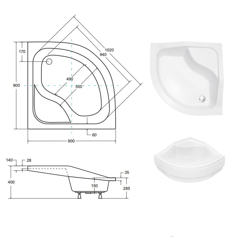 Brodzik półokrągły Besco Oliver I 90 x 90 cm - DODATKOWO 5% RABATU NA KOD BESCO5