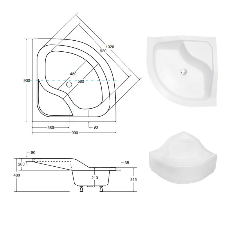 Brodzik półokrągły Besco Oliver II 90 x 90 cm - DODATKOWO 5% RABATU NA KOD BESCO5