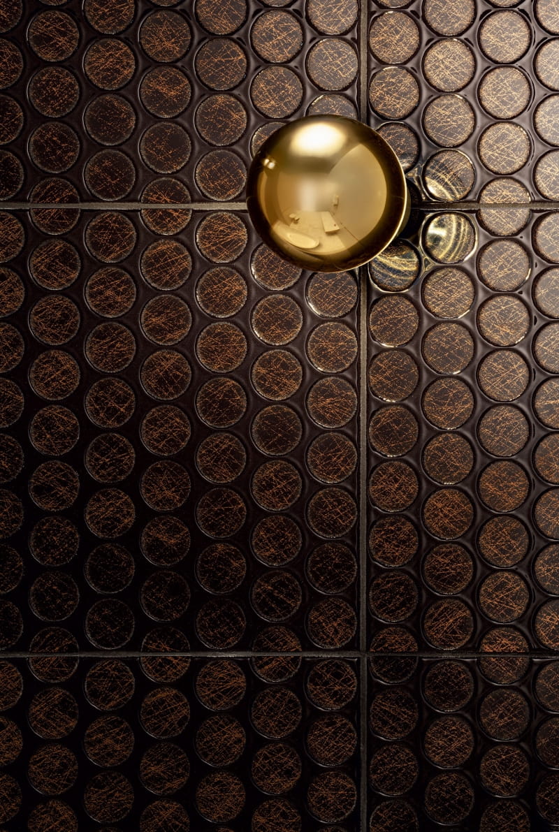 W zjawiskowej kolekcji Sophi Oro głęboki, ciemny kolor pozwala w przepiękny sposób wyeksponować złoto w różnych odcieniach i kształtach. Geometryczne koła są nowoczesne. Sztukateryjne wykończenia nawiązują do klasycznych form.