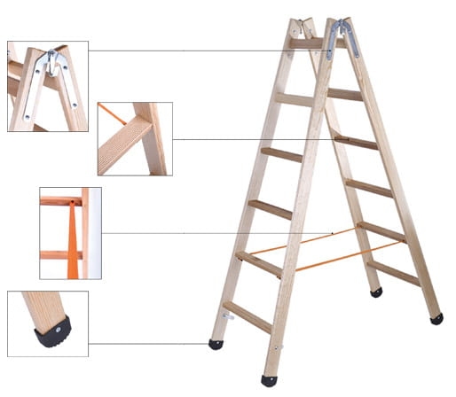 Bezpieczna i stabilna drabina posiada olejowaną, wykonaną z drewna sosnowego konstrukcje oraz metalowe ocynkowane łączniki z obustronnymi uchwytami. Ponadto zamontowane ma poziome, solidne szczeble z drewna bukowego, które są dodatkowo ryflowane.