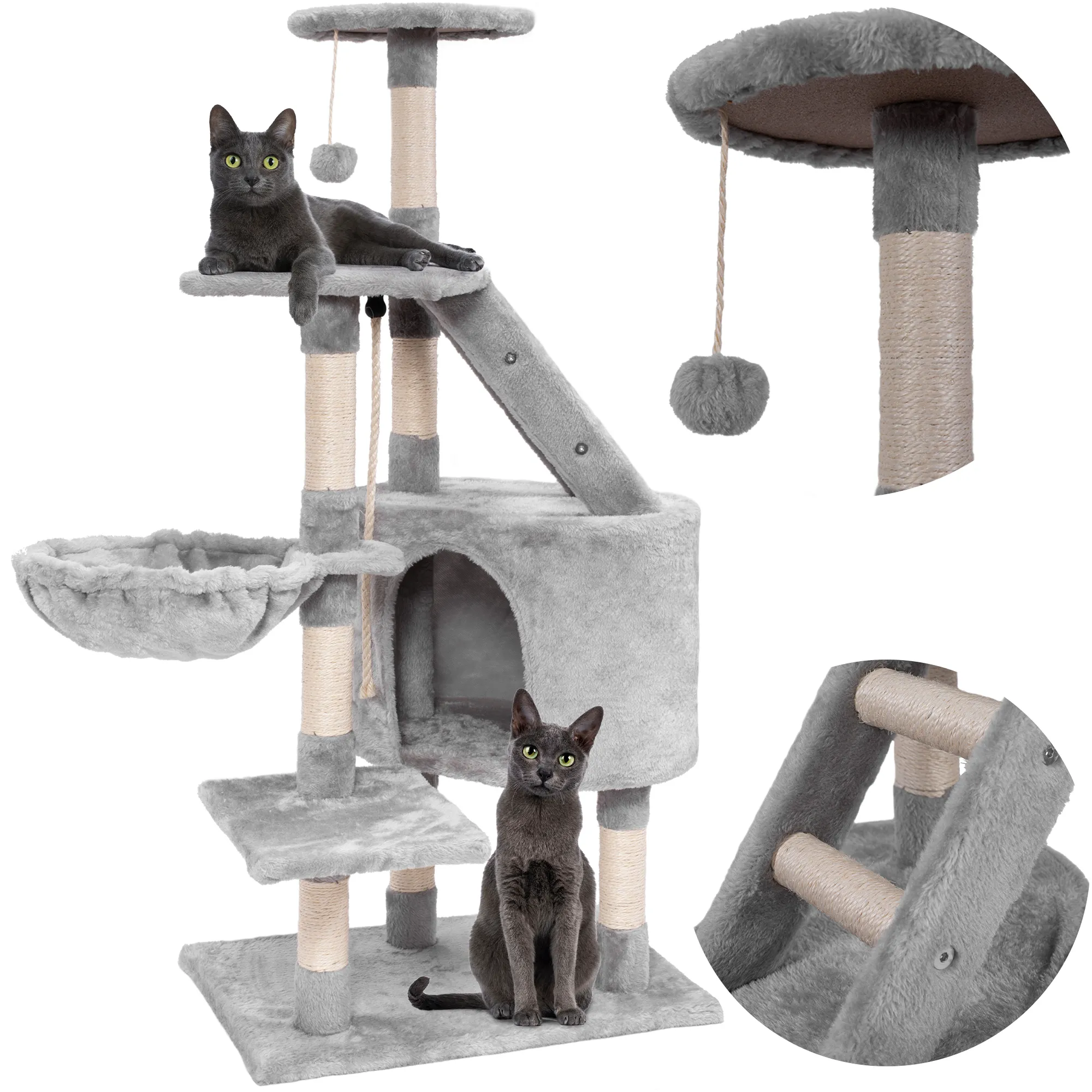 Elementy zestawu: hamak, drabinka, legowisko, pompon , sznur jutowy, Elementy montażowe, Instrukcja