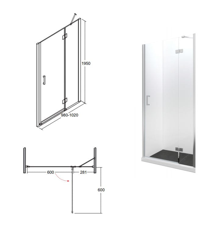 VIVA 100 x 195: 980 - 1020 mm - Magnetyczna uszczelka w drzwiach