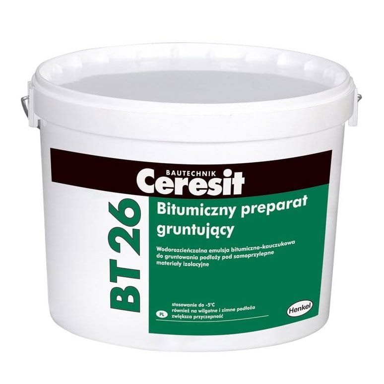 Ceresit BT 26 służy do zwiększania przyczepności stosowanych na zimno, samoprzylepnych membran izolacyjnych, np. Ceresit BT 21. Do stosowania na zewnątrz budynków, na nasiąkliwe podłoża mineralne, np. betony o zwartej strukturze (klasa wytrzymałości co najmniej C 12/15), tynki (kategoria CS IV wg PN-EN 998-1), bloczki gazobetonowe i silikatowe pustaków betonowych, bloczków betonowych, betonu komórkowego oraz równe mury ceglane, stare, wymagające renowacji podłoża bitumiczne.
