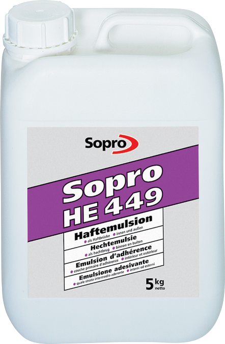 Preparat tworzący warstwę sczepną na podłożach chłonnych i niechłonnych. Wydatnie zwiększa przyczepność wylewek, szpachli cementowych do podłoży mineralnych. Zalecany do zapraw Sopro, między innymi do AMT 468 i Floor WS 3,5. Szczególnie przy podłożach trudnych do związania z zaprawami, czyli betonowymi czy niechłonnymi.