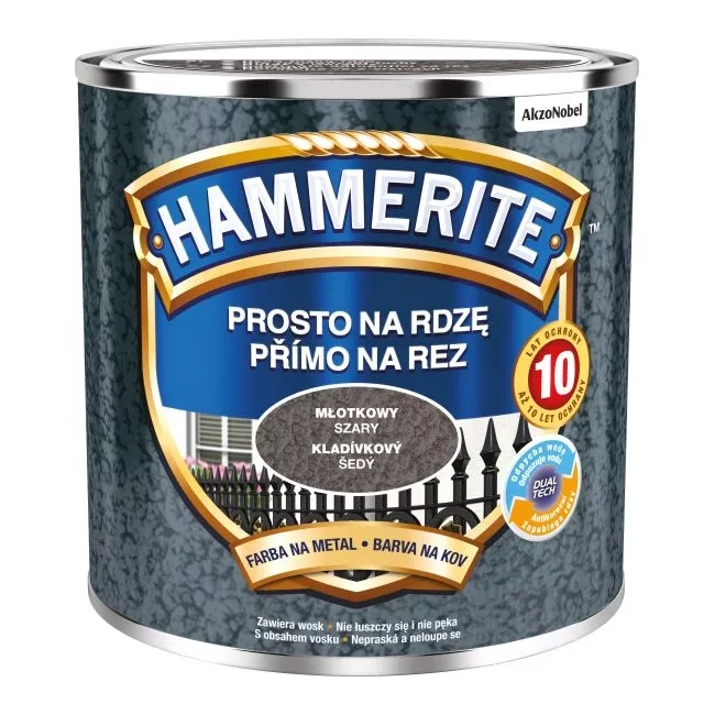 Farba do metalu Hammerite Prosto Na Rdzę młotkowy szary 0,25L