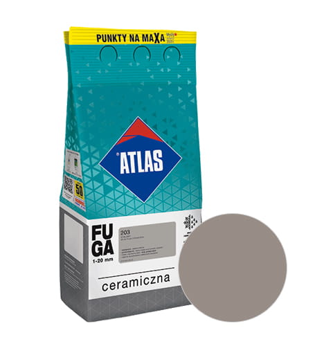 Fuga Ceramiczna Atlas w kolorze cementowym, to drobnokruszywowa zaprawa do spoinowania płytek ceramicznych, szklanych, mozaiki, marmuru i kamienia naturalnego, płytek metalowych, aluminiowych. Fuga elastyczna z włóknami, przyjazna wykonawcom, łatwa do mycia i profilowania, trwały, niezmienny kolor, wysoka odporność mechaniczna. Doskonała do kuchni, łazienek na balkony i tarasy.