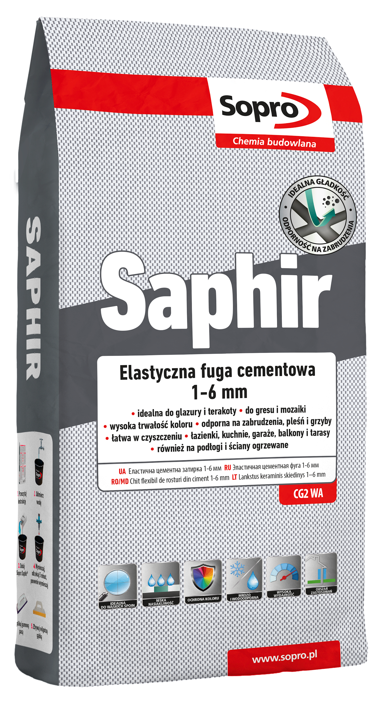 Cementowa, elastyczna, odporna na wodę i zabrudzenia, łatwo zmywalna zaprawa fugowa do spoinowania glazury i terakoty. Nadaje się również do spoinowania płytek o niskiej nasiąkliwości. Gładka powierzchnia fugi, jak również trwałość kolorów wpływają na jej estetyczny wygląd.
