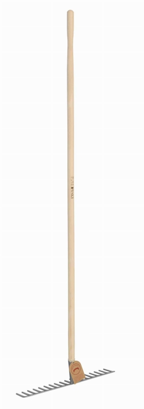 Grabie z hartowanymi 18-nastoma zębami z drewnianym trzonkiem. Lekkie i poręczne w użytkowaniu.