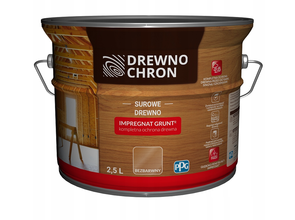 Głęboko-penetrujący (bezbarwny) przeznaczony jest do ochronnego malowania przedmiotów drewnianych eksploatowanych na zewnątrz pomieszczeń (drzwi, okna, meble ogrodowe, boazerie zewnętrzne, altanki, domki letniskowe, płoty, konstrukcje stropów i dachów, itp.) oraz wewnątrz pomieszczeń nie przeznaczonych na stały pobyt ludzi np. strychy, poddasza.
